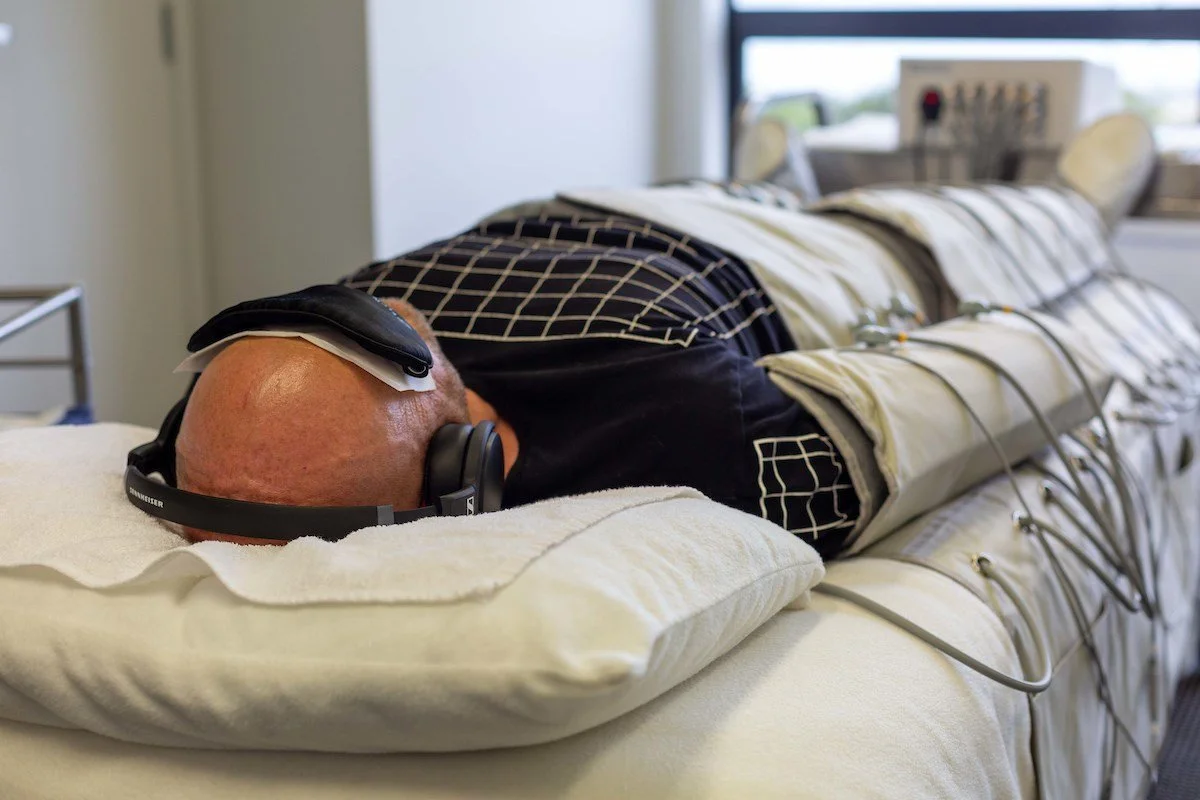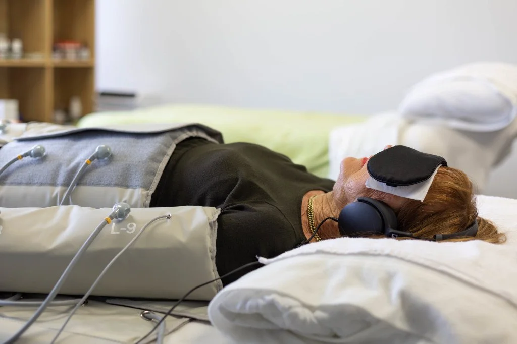 Clients are wrapped in the suit that is connected to the computerized unit which adjusts air pressure and heat settings based on your needs.
